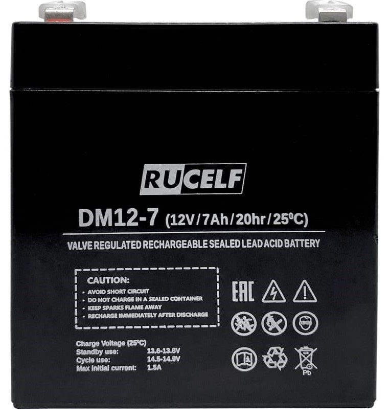 Аккумуляторная батарея RUCELF DM12-7 предназначена для использования с ИБП, в аварийных системах, видеонаблюдении, электромашинах и другом оборудовании. Она относится к типу AGM: конструкция с поглощенным электролитом имеет долгий срок службы и обеспечивает стабильную производительность. Аккумуляторы данного типа не требуют обслуживания, не склонны к саморазряду и стабильно работают при изменениях температуры.